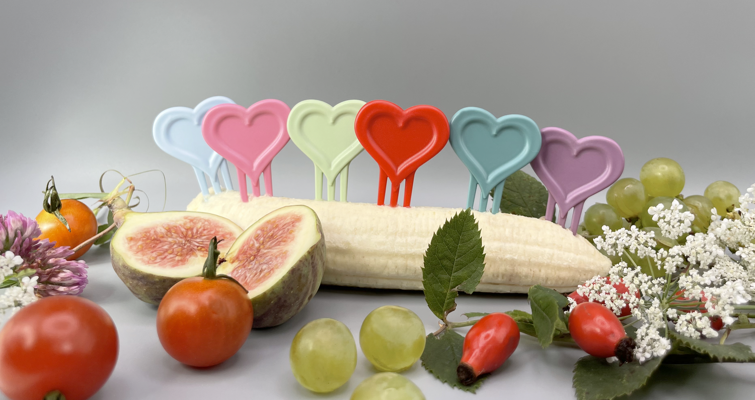 Unsere Snack Piekser sind groß genug, damit auch kleine Hände sie gut greifen können, das Material ist griffig und sie sind nahezu unkaputtbar.