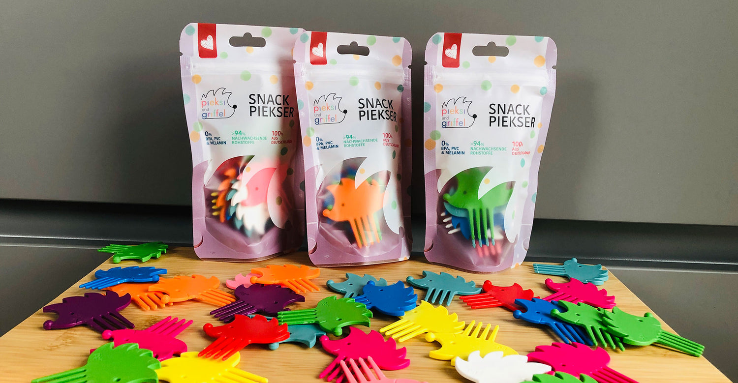 Unsere Pieksis tun das, was sie tun sollen - sie pieksen! :) Dank der Widerhaken fällt das Gepiekste nicht zurück auf den Teller - oder auf die Hose. Sie sind praktisch und handlich - zuhause & unterwegs - und sorgen dafür, dass der Snack deiner Kinder auch da landet, wo er landen soll - ohne Klebepfötchen. Somit bewahren sie auch irgendwie - alles - vor unerwünschten Fingertapsern und du hast weniger Arbeit. Die Pieksis sind leicht zu reinigen und dürfen grundsätzlich auch in die Geschirrspülmaschine. (Handwäsche empfohlen. Hier weitere Infos zur Pflege).